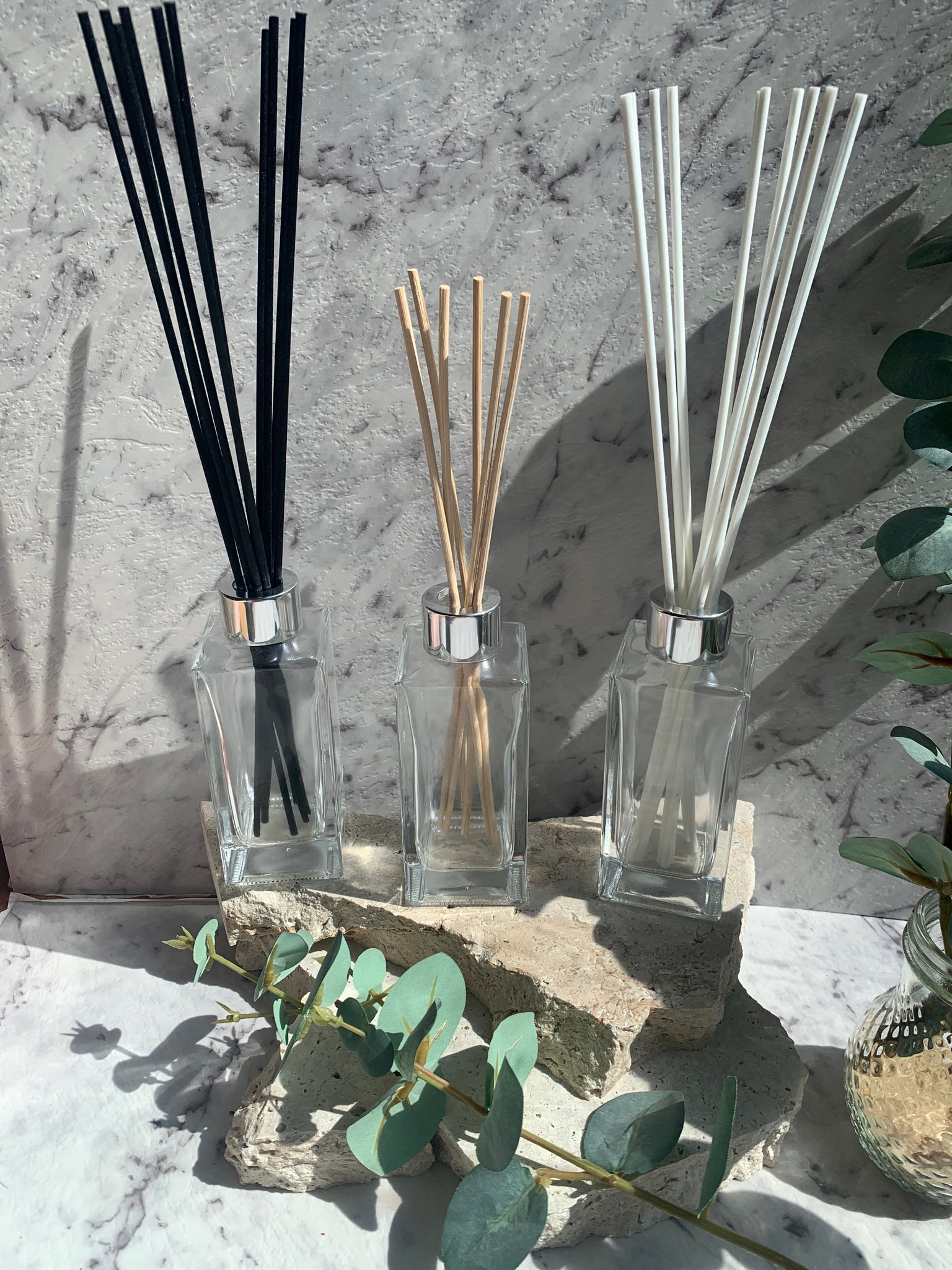 When choosing from our beautiful fragrances be sure to not forget to then select your reed sticks in your choice of colour to perfectly accent your crystal clear diffuser. Selections of reed stick include Black, White & Natural Wood. All selected to perfectly accent a vast range of space decors.